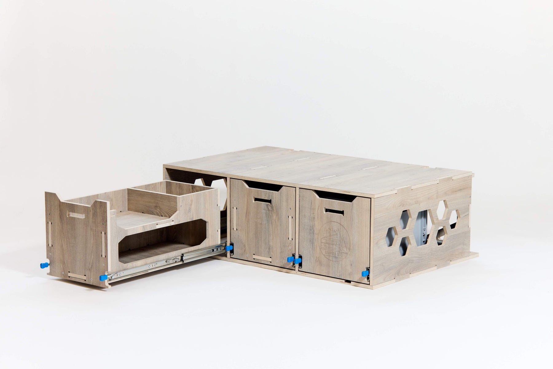 Su diseño modular y versátil se adapta perfectamente a diferentes modelos de furgonetas, proporcionando almacenamiento eficiente y espacio para dormir, cocinar y relajarte.